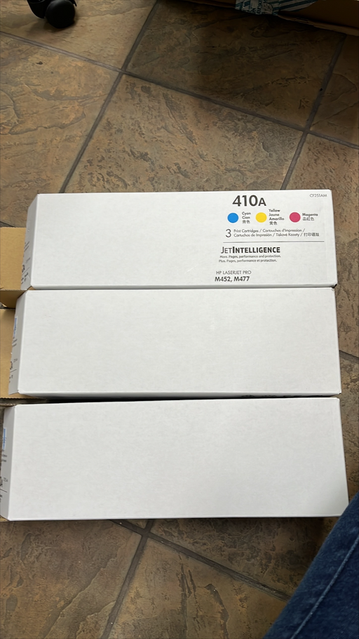 Hewlett Packard HEWCF410AQ Black/Cyan/Magenta/Yellow Toner New Open Box UnusedHPOriginal price $298.99 - Original price $298.99Original price$298.99$298.99 - $298.99Current price $298.99| /Low stockHP 410A - 4-pack - black, yellow, cyan, magenta - original - LaserJet - toner cartridge (CF410AQ) - for Color LaserJet Pro M452, MFP M377, MFP M477 Original price $298.99 - Original price $298.99Original price$298.99$298.99 - $298.99Current price $298.99| /